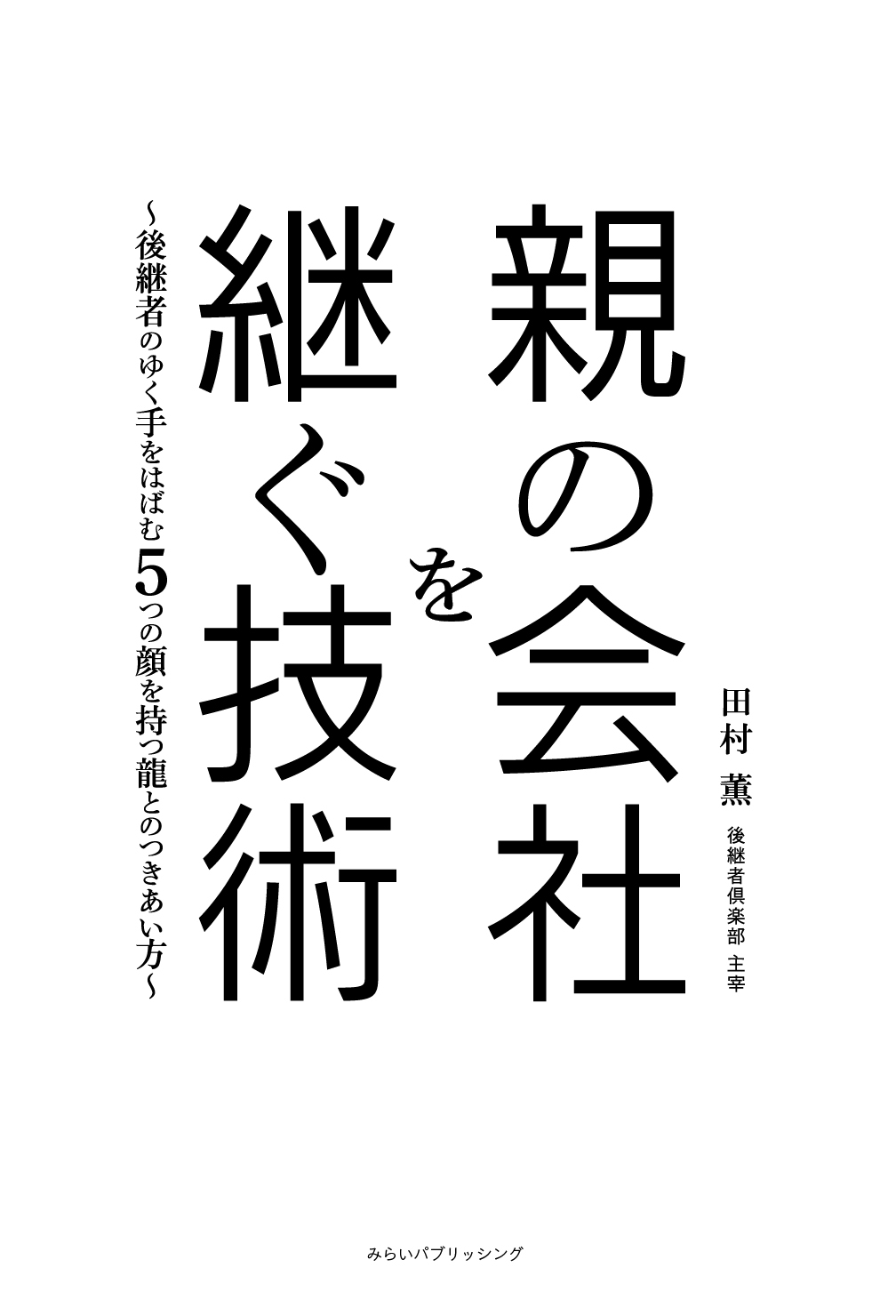 みらいパブリッシング(所在地:東京都杉並区高円寺、代表取締役:松崎義行)は「親の会社を継ぐ技術」を2019年7月11日に刊行します。 著者:田村薫 本体 1500円+税 208ページ ISBN:978-4434262425 書籍詳細 :https://amzn.to/300jHuR