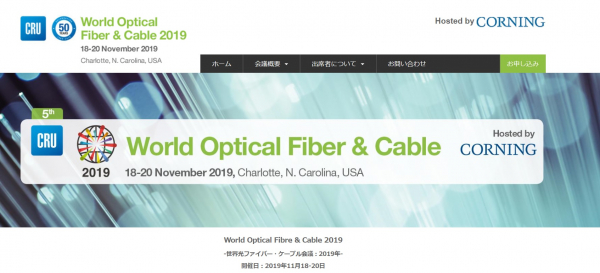 会議:「World Optical Fibre & Cable 2019 -世界光ファイバー・ケーブル会議 2019年」