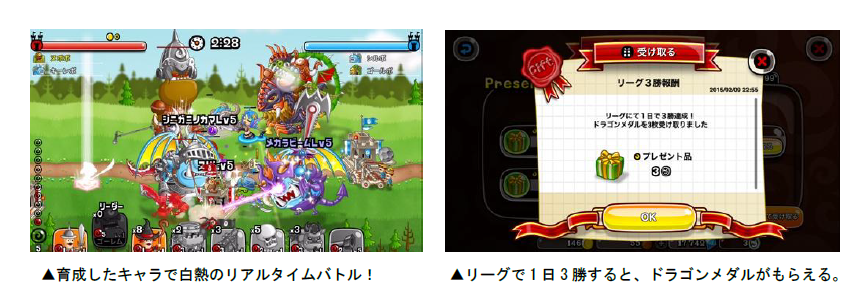 (1)「仲間と攻撃」で勝利すると「ドラゴンメダル」2枚プレゼント!(1日1回まで)