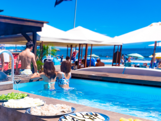 ビーチハウスは海水浴場として全国的に知名度の高い片瀬海岸東浜海水浴場に立地する、ビードが運営とオペレーションを受託する海の家です。従来の海の家のサービスに加え、自身の運営するビーチマリーナと連携した様々なマリンスポーツ体験(Web: https://www.chotto-yacht.com/school/ )や、海をコンセプトにしたカフェ&バー、ヘミングウェイ(Web: https://www.hemingway.cafe/ )と連携したボリュームのある300gステーキバーベキューコース(Web: https://www.hemingway.cafe/bbq/beachhouse/ )と仮設のプールを砂浜に設置し、海の家ながらも高級感のある差別化されたサービスとファシリティを備えているところが大きな特徴です。昨年も多くの来場者が訪れ、週末はバーベキューの予約が殺到し、予約をできないことも多々ある人気の海の家です。