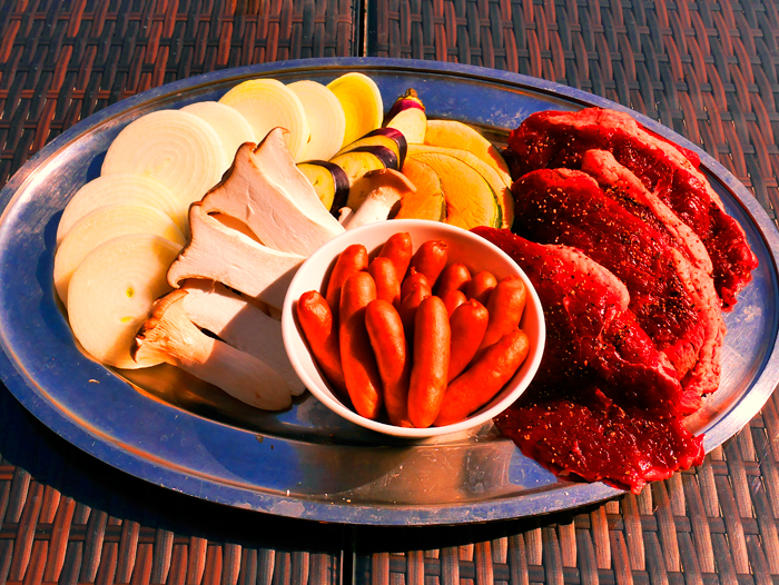 また、食材はビーチマリーナに併設されているヘミングウェイが提供する自慢の牛ランプステーキ300gに加えソーセージや野菜がセットされ、ドリンクはオレンジジュースやウーロン茶などのソフトドリンク飲み放題が含まれています。アルコール飲み放題プランも追加する事が可能で、発泡酒の飲み放題やワインのプレゼントなどのコースを用意しております。その他オプションとしてゆっくりくつろげるVIP席やスタッフがお肉を焼くコンシェルサービスなどもご用意しております。