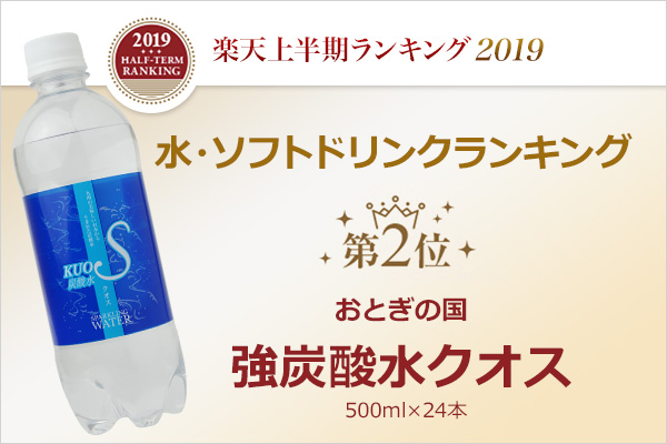 株式会社 OTOGINO(オトギノ代表 鬼武公洋 本社 大分県日田市北友田 2 丁目 2123 番地 1)が E-コマースにて全国販売している主力商品、うまさを感じる強炭酸水『KUOS-クオス-』が楽天上半期ランキング2019 水・ソフトドリンク部門で第2位に選ばれました。(2019年7月2日発表)