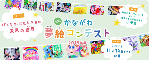 「かながわ夢絵コンテスト」は、2019年度で24回目の開催を迎える、神奈川県の小学生およそ45万人を対象にした絵画コンテストです。“ぼくたち、わたしたちの未来の世界”をテーマに、未来への想いや希望溢れるたくさんの夢絵を描いてもらいます。