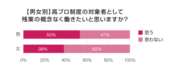 高プロ制度:52%の会社員が否定。女性は否定派6割上る