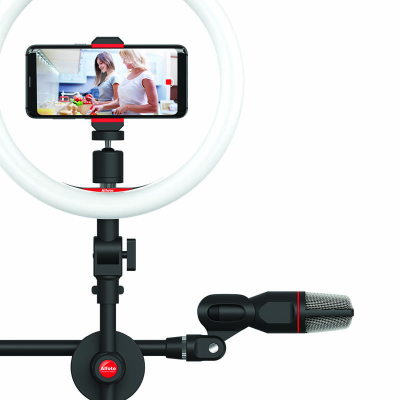 56mm~98mm幅のスマートフォンや一眼レフカメラ、ミラーレスカメラで簡単に撮影環境をセットアップすることができます。コンパクトスタンドは380mm~550mmの高さ調整とブームアーム機能を備え、目的に応じて多彩な撮影スタイルに対応します。