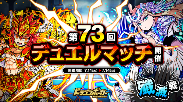 株式会社アソビズム(本社:東京都千代田区、代表取締役:大手智之)は、App Store・Google Playにて好評配信中のリアルタイム合体カードバトル『ドラゴンポーカー』で、2019年7月11日(木)より 「第73回デュエルマッチ本戦」を開催いたします。デュエルマッチでは、バトルで獲得できる「デュエルP」に応じてランキングが決まり、リーグ終了時に報酬が獲得できます。また、累計勝利数に応じて、限定カードも手に入ります。相手の心理を読み、1vs1の真剣勝負に挑みましょう!
