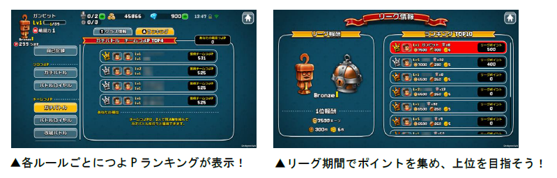 リーグに参戦して獲得できる「リーグP」を追加いたします。これにより、クラスに応じて組み分けされたグループ内のプレイヤーたちと、リーグで獲得できる「リーグP」を競います。リーグの期間が終了するたびに、所属クラスや順位に応じた報酬が手に入ります。