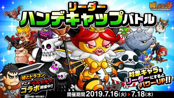 株式会社アソビズム(本社:東京都千代田区、代表取締役:大手智之)は、App Store・Google Playにて好評配信中の『城とドラゴン』で、2019年7月16日(火)より「リーダーハンデキャップバトル」を開催いたします。