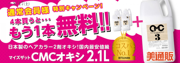 プロ向け美容材料の通信販売サイト「美通販」が、ご好評につき「CMCオキシ プラスワンキャンペーン」の期間を延長し開催中です。本キャンペーンは2019年7月31日(水)までを対象期間としていましたが、理美容師の皆様からご好評をいただいていることを受け、2019年8月17日(土)まで期間を延長し、新たに開催する運びとなりました。
