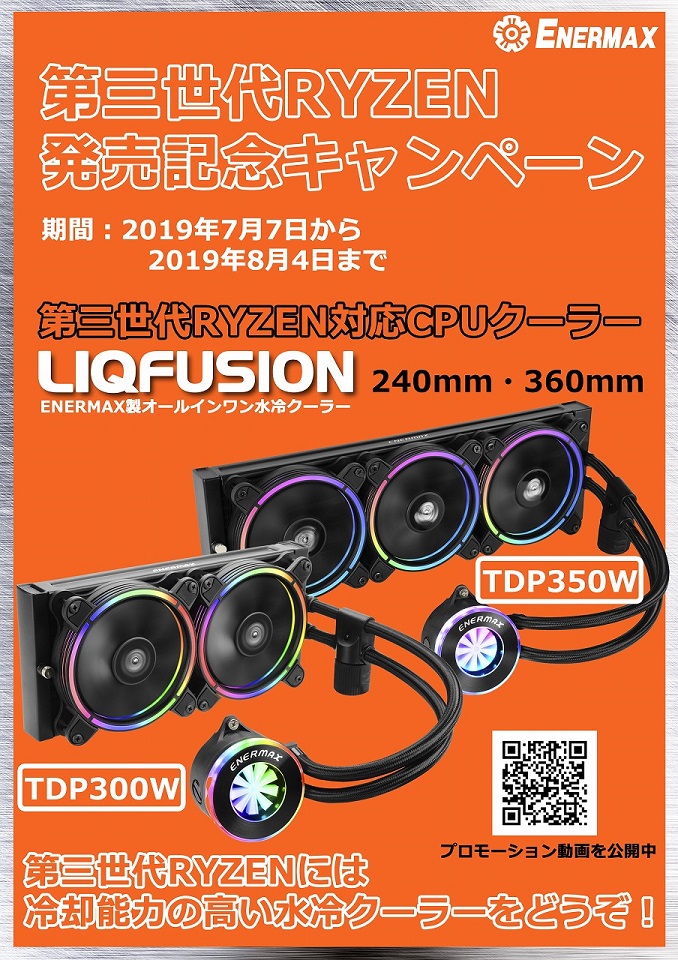 ぜひこの機会に最新のAMD製CPUとENERMAX製水冷クーラーの組み合わせによる、最高のパフォーマンスをご体験ください。