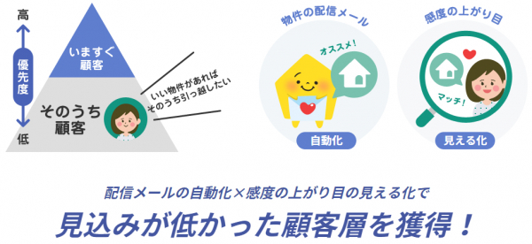 今回リリースした『売買版顧客管理機能(CRM)』では、様々な機能により効率的・効果的な追客が可能になっています。