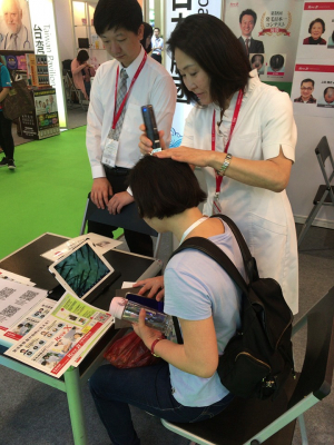開催中、多くの方々がリーブ21のブースを訪れご自身の頭皮をチェック。特に、副作用の心配がない天然・自然の発毛効果に強い関心を持っておられる方が多く、健康意識の高さを感じました。
