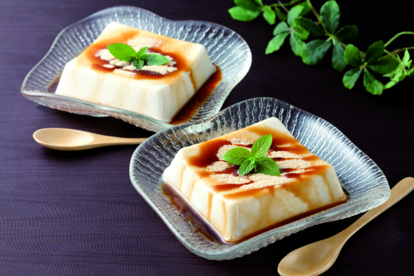 糖質の高いユキピリカ大豆の特徴を生かし、やわらかいテクスチャーに仕上げました。また、オリゴ糖を配合することで通常よりも臭みのないマイルドな味に。そのままでももちろん、黒蜜やきな粉をかけてスイーツ豆腐として食べるデザート専用豆腐です。