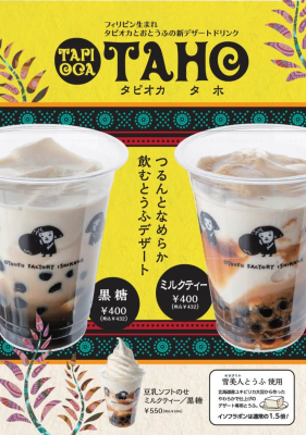 同商品は直営店にて発売中の、豆腐とタピオカに甘味をプラスした甘い豆腐ドリンク『タピオカタホ』にも使用しています。
