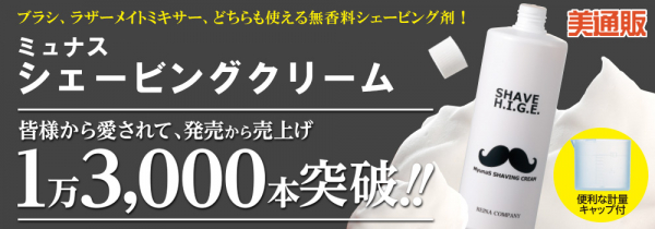 ブームではなく定番のひとつとして定着した人気のBARBERスタイル。理美容業界では、理容室・美容室の垣根を越えて、今後の動向にも注目が集まっています。「美通販」では数多くのBARBERアイテムを取り扱っておりますが、その中でも人気が高い商品が、シェービング関連でも売上1位の実績を持つ「ミュナス シェービングクリーム」です。発売以来、売上げ本数は1万3,000本を突破し、理容師の皆様から愛され続けているBARBERアイテムのひとつです。