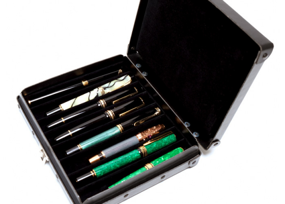 収納部には美しいベルベット製のパーティションがペンを優しく保護します。