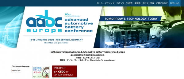 例年Advanced Automotive Battery Conference (AABC) Europeには、自動車業界で電池技術の開発に携わっている研究者や主要な供給企業の幹部が世界各地から集まり、技術開発の動向や画期的な技術、来年以降の市場の見通しなどについて1週間にわたり議論を行います。