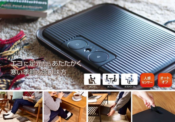 読書やお仕事、勉強中に冬場の足先の冷えから温めてくれるフットヒーター。人感センサー機能付きなので人が離れると自動オフ、消し忘れてしまった際も3時間で電源がオフになる安心・省エネです。本体も重量が約1.15kg、厚み約3cmと薄く女性でも持ち運び簡単なアイテムです。