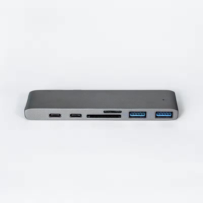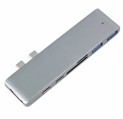 WT-MHC7-SLは、USB3.0 x 2ポートとUSB type-C x 2ポートに加え、HDMI出力・mini/SDスロット・microSDスロットまでをも備えた、Mac Book Pro用の多機能 7in1 USBハブです。
