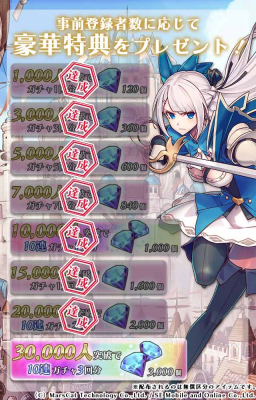 この結果、リリース時にユーザーの皆様へダイヤ2000個(10連ガチャ2回分)をプレゼントいたします。引き続き、より多くの皆様のご登録をお待ち申し上げております。