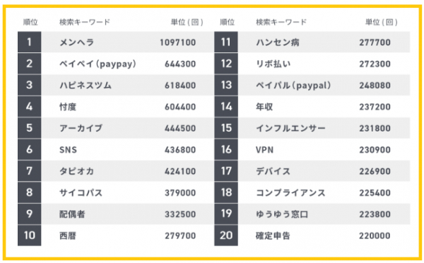 当社では引き続き、半期に1度ランキング形式で『検索ワード「〇〇とは」TOP20』をリリースにて発表いたします。