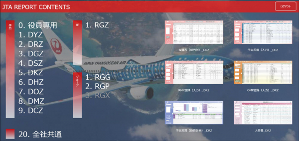 JALグループが一丸となって推進する2017~2020年度中期経営計画のもと、JTAは「沖縄に一番必要とされるフルサービスキャリア」となることをビジョンに掲げ、次なる成長戦略につながる取り組みを加速させています。そうした中で様々な業務を支えるITシステムが課題となってきました。業務分析に必要なデータはシステム単位に管理されており、レポート作成の担当者は各部門に対して個別にデータ提供を依頼する必要がありました。このためタイムラグが発生し、リアルタイムに近い鮮度の高いデータを入手できず、またレポート作成は主にExcelが用いられ、データ集計や分析のためには複雑なマクロを駆使する必要がありました。