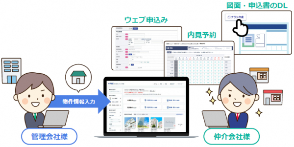 今回のリニューアルにより、本サイト上で物件確認~内見予約に関わる業務がすべて完結します。S-FITはリーシング業務をシステムで一元管理できるようになる上、利用する仲介会社は24時間いつでも空室確認・内見予約が行えるため、双方の業務が効率化されます。