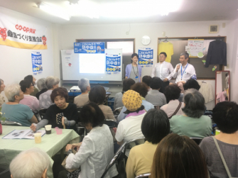 ◆ コープのお買物便(移動販売車)の停留所や自治会などで開催している高齢者サロンなど11会場で熱中症対策のセミナーを開催し、289人が参加しました。(2019年6月~7月)