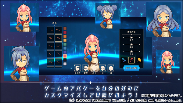 目や鼻、髪などの形や位置、色などを自身の好みに合わせて、細かく、バリエーション豊かに設定できます。