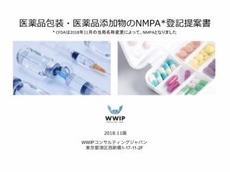 株式会社ワールドワイド・アイピー・コンサルティングジャパン (WWIP : 東京都港区西新橋1-17-11) は、 NMPA備案登記のひとつである薬包剤、薬品補料(薬品添加物)の申請代行サービスを提供しています。