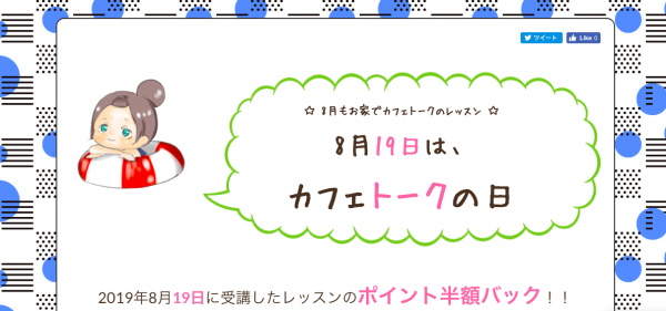 19日に受講したレッスン料の半額を後日半額バックするキャンペーンです。