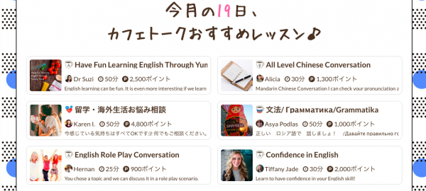 多くのご受講者様にカフェトークの多彩なレッスンをお試しいただければと思います。