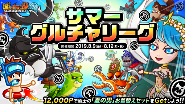 株式会社アソビズム(本社:東京都千代田区、代表取締役:大手智之)は、App Store・Google Playにて好評配信中の『城とドラゴン』で、2019年8月9日(金)より「サマーグルチャリーグ」を開催いたします。
