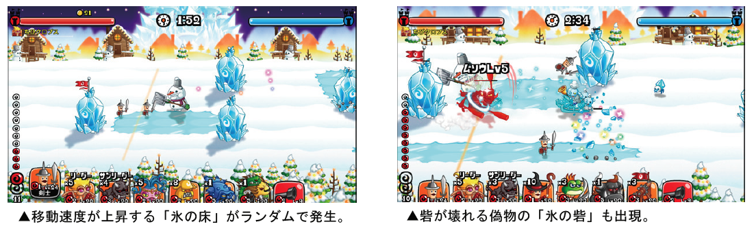 討伐イベントは、つぎつぎと出現する敵を倒しながらフィールドを進み、敵の城を攻め落とせば勝利となるイベントです。以下期間にて、雪国マップを舞台にした討伐イベント「氷の女王」が開催。ステージをクリアすると、クリア報酬のほか特定条件を達成することでさらに多くの報酬が手に入ります。