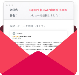 ご投稿後、レビュー内容をコピー・ペースト、あるいはスクリーンキャプチャして、support_jp@wondershare.comまでご応募ください。
