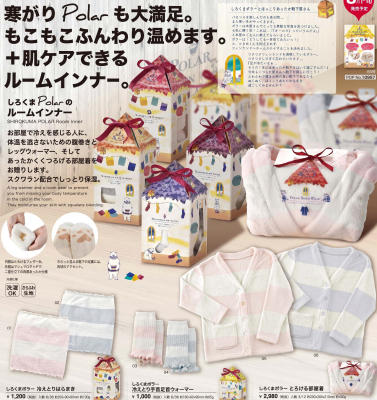 人気のしろくまキャラクターのPolarは寒がりです。そんなPolarも大満足のスクワラン配合のさらふわ生地のルームインナーができました。肌ケアしながらもこもこふんわり温めます。