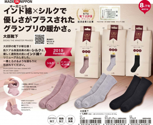 「心からほっとする健康と癒し」をコンセプトに商品を展開する株式会社ほんやら堂(本社:群馬県高崎市 代表取締役:藤永辰美)は、2019年8月20日(火)から新仕様の「大臣靴下」を販売しています