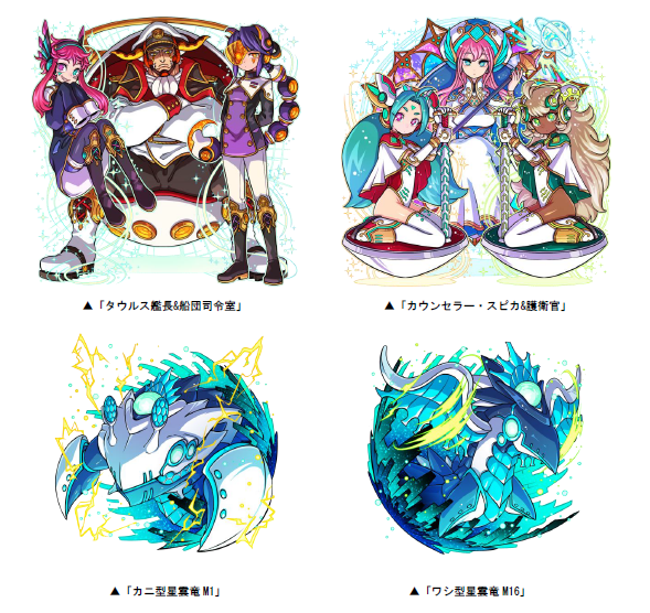 本ダンジョンには、ボスとして「タウルス艦長&船団司令室」や「カウンセラー・スピカ&護衛官」「カニ型星雲竜M1」「ワシ型星雲竜M16」などが出現し、クリアした際に手に入る「星雲竜P」を貯めると、