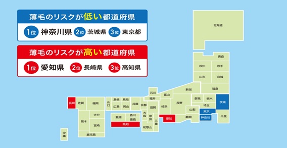 薄毛を気にしている都道府県