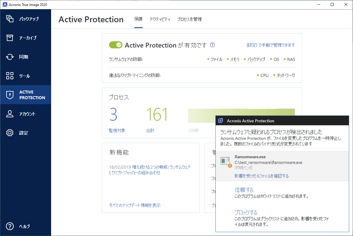 [機能強化] Acronis Active Protectionの改良