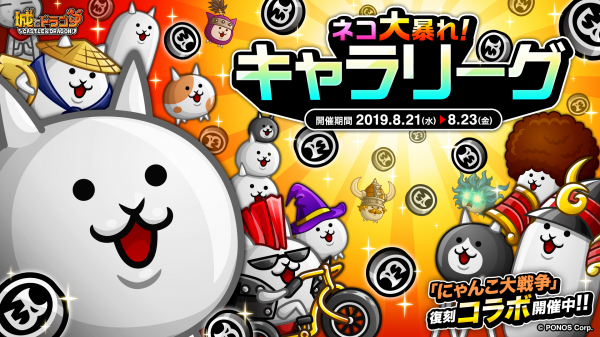 好評配信中の『城とドラゴン』で、2019年8月21日(水)より「ネコ限定キャラリーグ」を開催いたします。