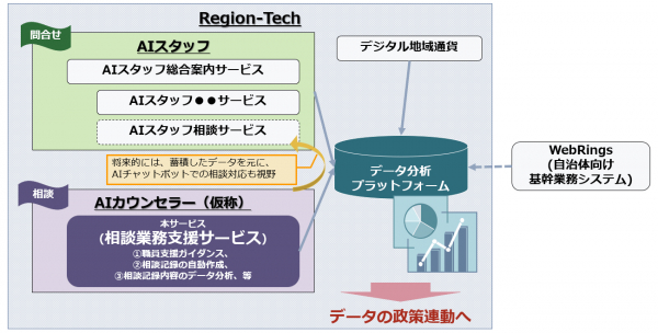 本サービスは、AIによる住民問い合わせ対応を支援する「AIスタッフ総合案内サービス」(2018年10月提供開始)に続く、「Region-Tech」構想(文末ご参照)の第二弾のサービスです。喫緊の対応が求められる児童相談業務から、順次、対象業務を広げていきます。