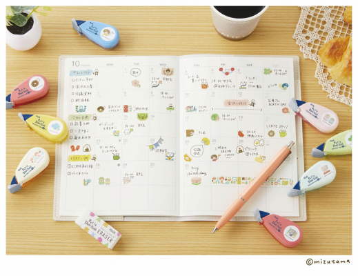 テープ幅は、10mm幅。太幅だからこそできる繊細な柄デザ インで、mizutamaさんのイラストに登場する動物や女の子のかわいらしい表情や動きを表現。手帳のデコレーションの幅が広がりました。