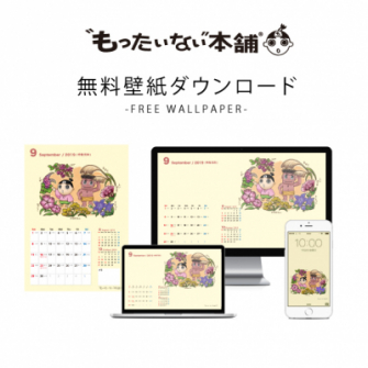 『もったいない本舗』では、毎月季節感たっぷりの「もたろう」壁紙を配信中です。