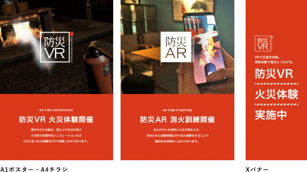防災VR/ARのパッケージごとに専用のポスター・チラシ・Xバナーをご用意しています。