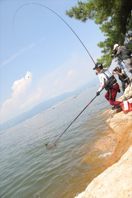 決勝トーナメントには、西田英司選手(牛窓)と、車孝信選手(家島)、桑原将太選手(九十九島)、沖永吉広選手(がまかつ推薦)、太田賢一選手(若狭大島)、山本哲也選手(沖縄)、各組2位から上位2人を選ぶワイルドカード枠から小川達矢選手(シード)、青木重人選手 (富浦)の8人が進出。そして、その後の準々決勝と準決勝を経て、車選手と青木選手が残った。