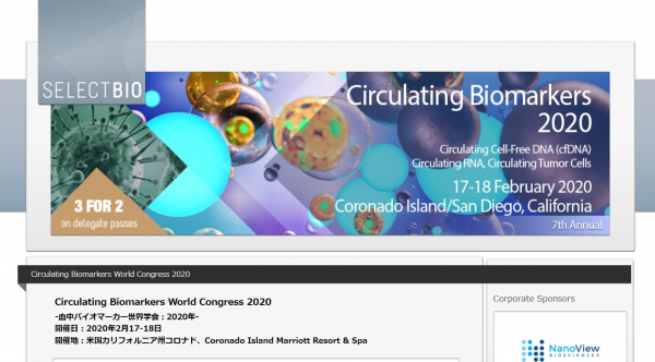 会議:「Circulating Biomarkers World Congress 2020-血中バイオマーカー世界学会 2020年」