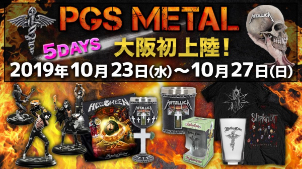 新しい世界のエンターテイメント流通ネットワーク・サービスを展開する株式会社JAMSHOPPING(本社:東京都渋谷区代表取締役:遠藤祐一)は、お客様のご要望にお応えしてHeavy Metal、Hard Rockミュージシャン公式商品の祭典!PGS METALを2019年10月23日(水)~10月27日(日)までの5日間限定で、初の大阪開催をいたします。
