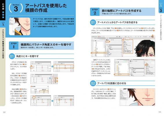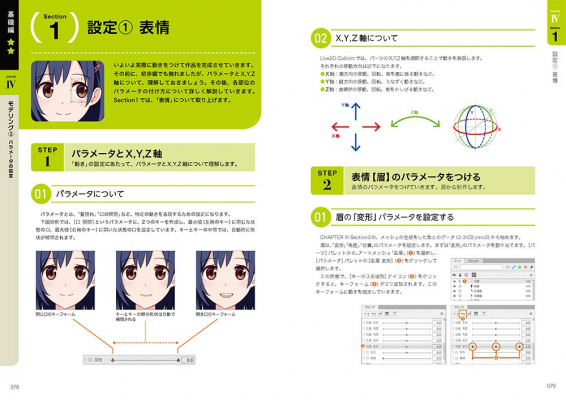 Live2D社監修、352Pの大ボリュームで、作例キャラの画像データやモデルデータ、モーションデータはすべてダウンロード可能となっています。