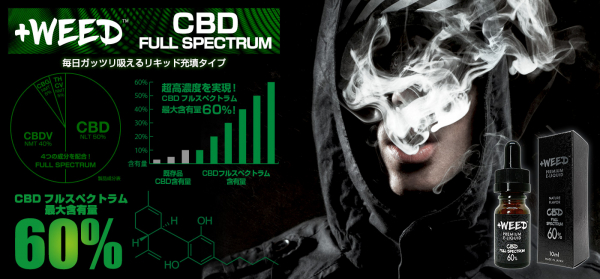 株式会社GRENN RUSH BY WEEDは、吸うCBD【+weed(プラスウィード)】からこの度、「CBDフルスペクトラム配合リキッド」を2019年9月11日(水)より発売いたします。
